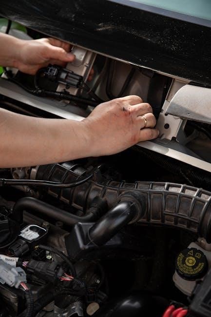 The manual’s wiring diagrams are essential for tracing electrical issues. Check the solenoid, starter motor, and battery connections for corrosion or damage. A faulty solenoid is a frequent culprit, preventing power from reaching the starter. The PDF provides resistance values for testing these components.
