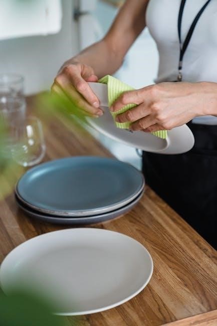 Ensure the dispenser lid closes securely to release the detergent at the appropriate time. Avoid overfilling‚ as this can lead to residue. Using the correct amount of detergent and proper dispenser usage ensures sparkling clean dishes and prevents potential damage to your dishwasher.